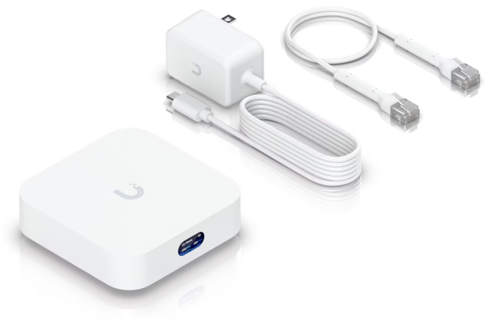 Ports: 1× GbE RJ-45 LAN, 1× GbE RJ-45 WAN, 1× USB-C (power)