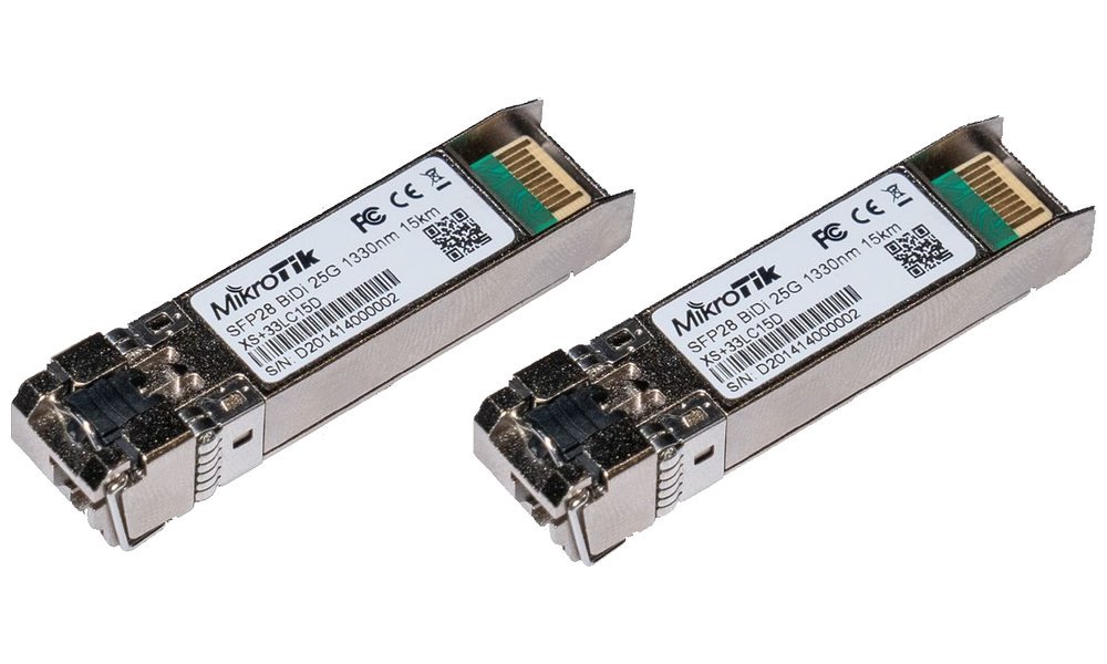 A kit of two combined 1.25G SFP, 10G SFP+ and 25G SFP28 modules. 15 km, 1270nm + 1330nm.