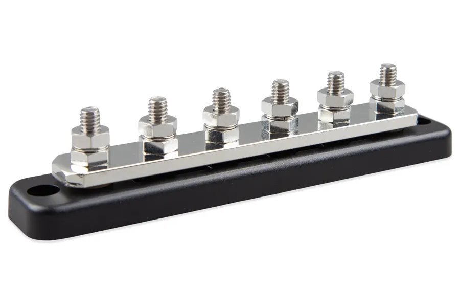 Victron DC Busbar 250A 6P Busbars are used for high current distribution and at the same time they provide connections for batteries and/or DC equipment. For more technical information and for the busbar dimensions see the... more