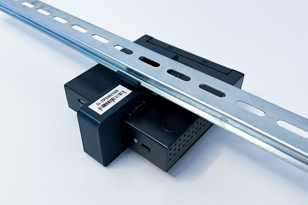 Plastic DIN rail mount for TP-Link OC200, SF1005xx, SG105xx, SG1005xx.