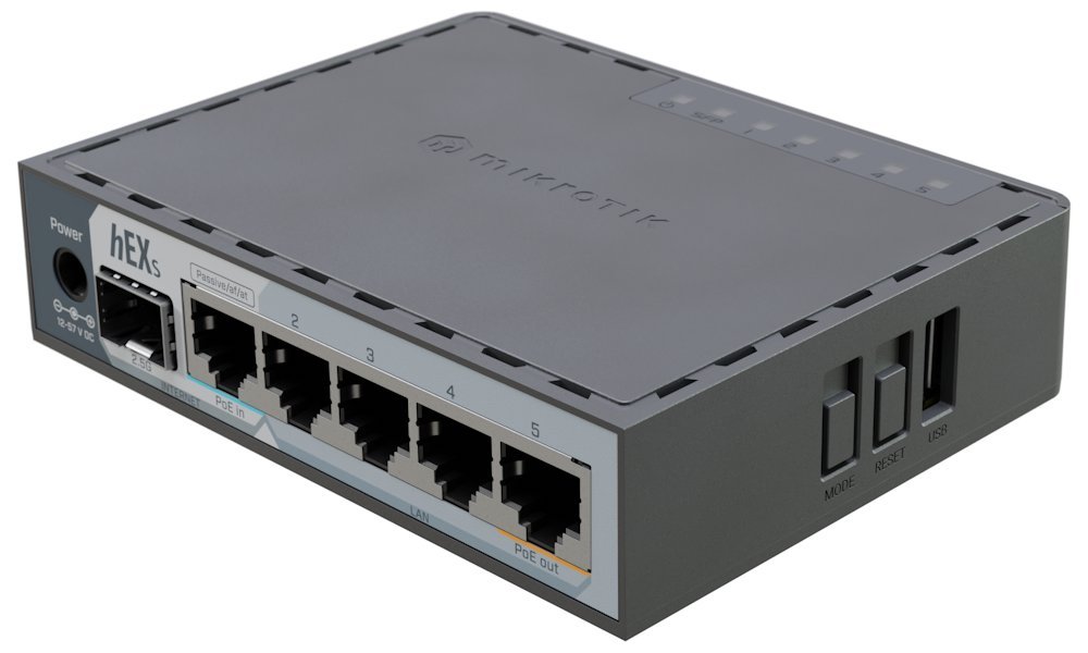 The MikroTik hEX S is an ideal solution for building a powerful wired network in homes, small offices, or test labs. This compact router offers 5 gigabit Ethernet ports with link bonding support and a 2.5G SFP port for high-speed connectivity, allowing full use of modern internet connections and local network services.