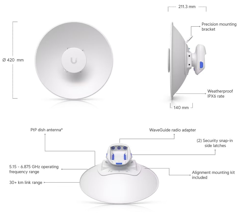 Compatibility: Wave-MLO5, airMAX Rocket Prism 5AC (RP-5AC-Gen2), airFiber 5XHD (AF-5XHD)