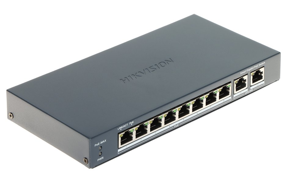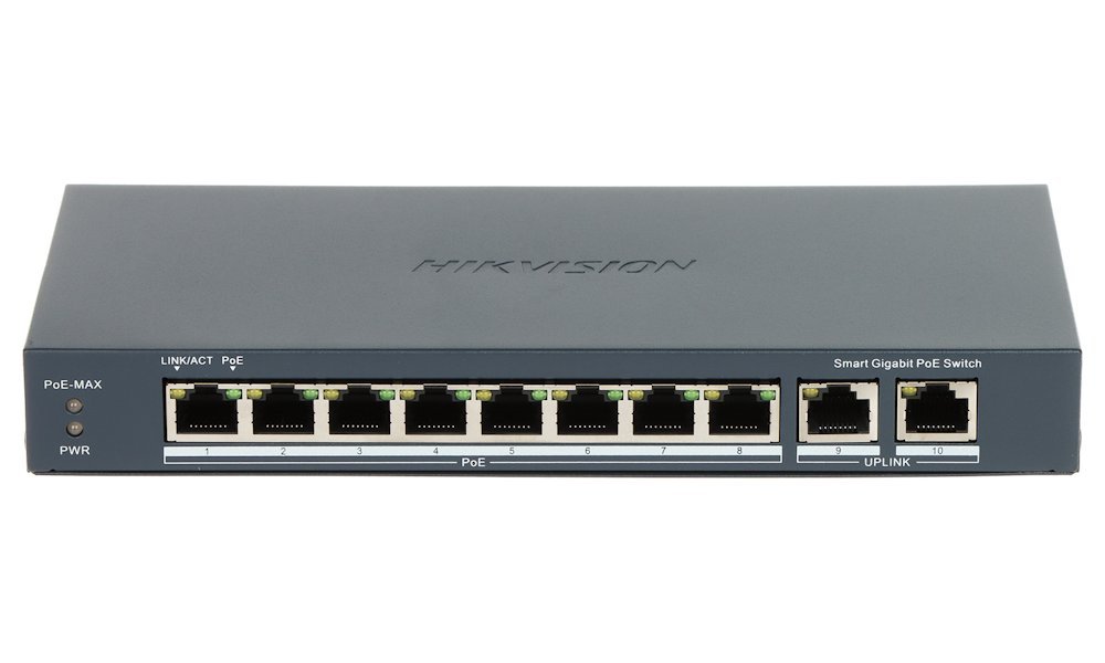 Compact managed 10-port PoE switch for powering IP cameras or other PoE-enabled devices. Features 8× PoE output 802.3af/at (max. 30 W/port) with total power output of up to 110 W, surge protection up to 6 kV and total capacity of 20 Gbps. The switch also features extend mode for data transmission and power delivery up to 300 m at 10 Mb/s (depending on cable quality).