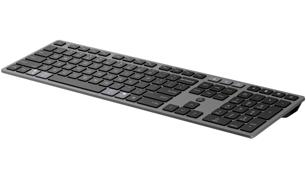 This full-sized HP 725 wireless keyboard offers advanced features for maximum productivity. Thanks to the innovative supercapacitor, you get up to 2 months of use after just 3 minutes of charging. The keyboard allows connection of up to three devices simultaneously - two via Bluetooth and one using a 2.4 GHz USB receiver.